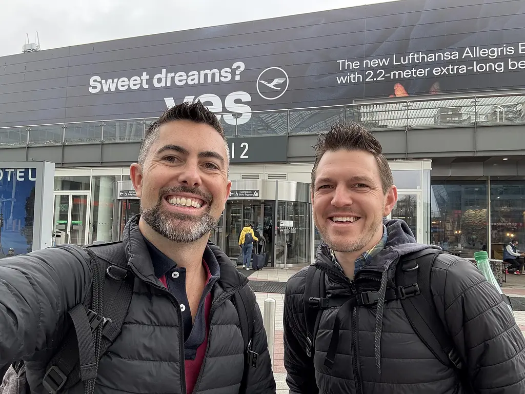 We arrived at Munich International Airport via the train from the city center—quick, easy, and super efficient. Instead of heading upstairs, we used the self-serve kiosks near the train station to print our boarding passes since we weren’t checking any luggage.